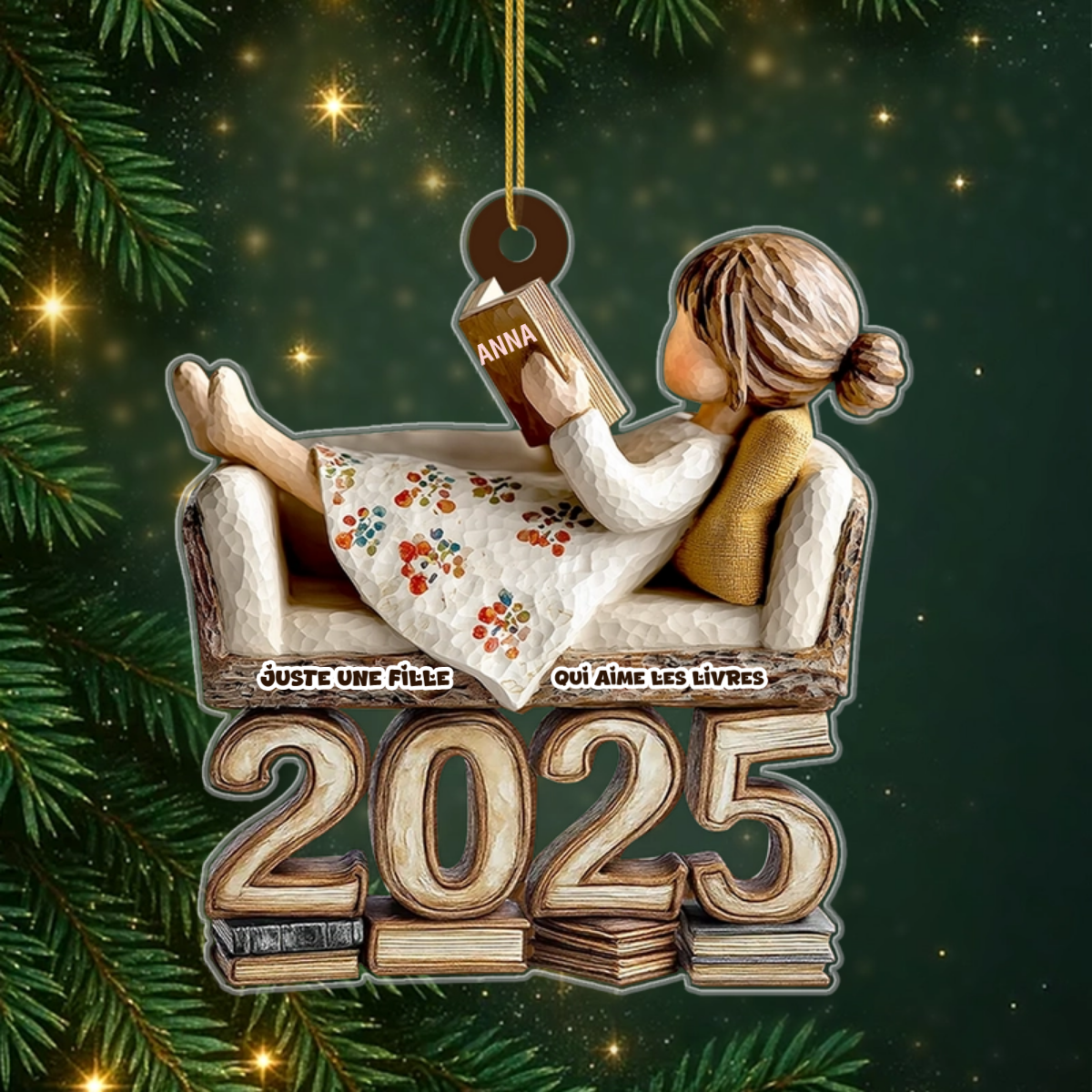 Cet ornement dĂ©licat â une silhouette lovĂ©e sur son canapĂ©, absorbĂ©e par sa lecture â capte cette parenthĂšse douce, ce moment suspendu que seuls les amoureux des livres comprennent.