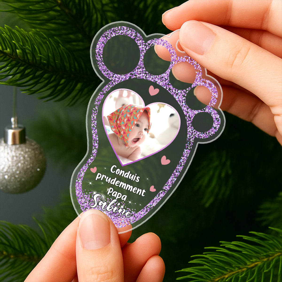 Décoration de voiture en acrylique – Petit pied de bébé personnalisable avec photo