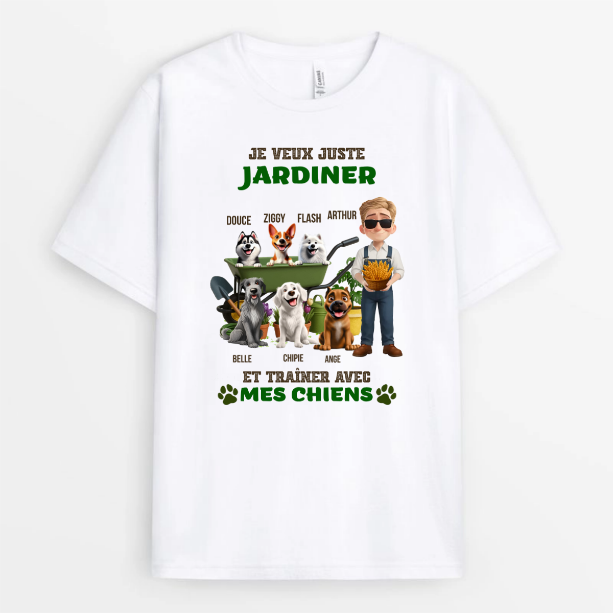 Je veux juste jardiner et traßner avec mes chiens - Cadeau Personnalisé | T-shirt Pour Homme
