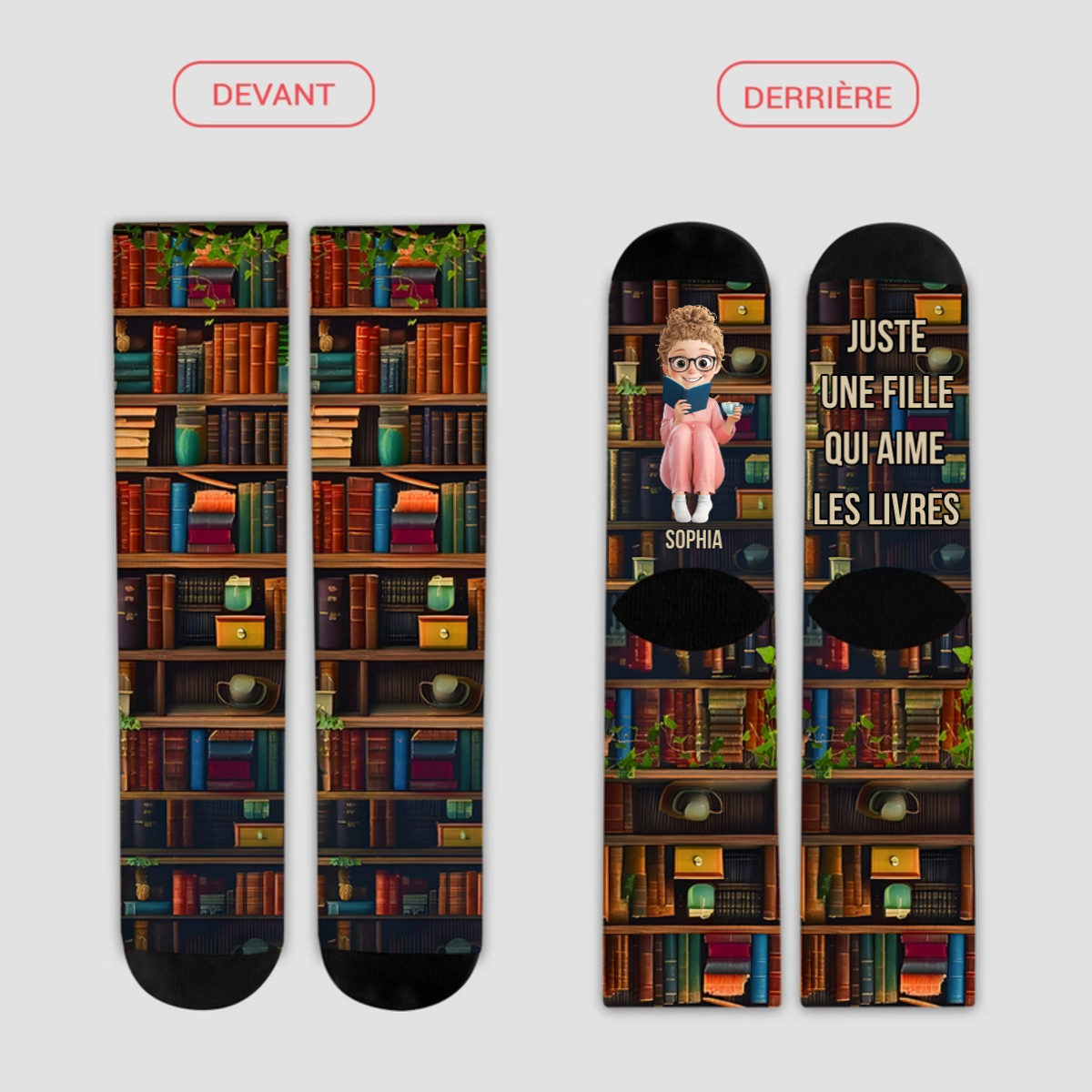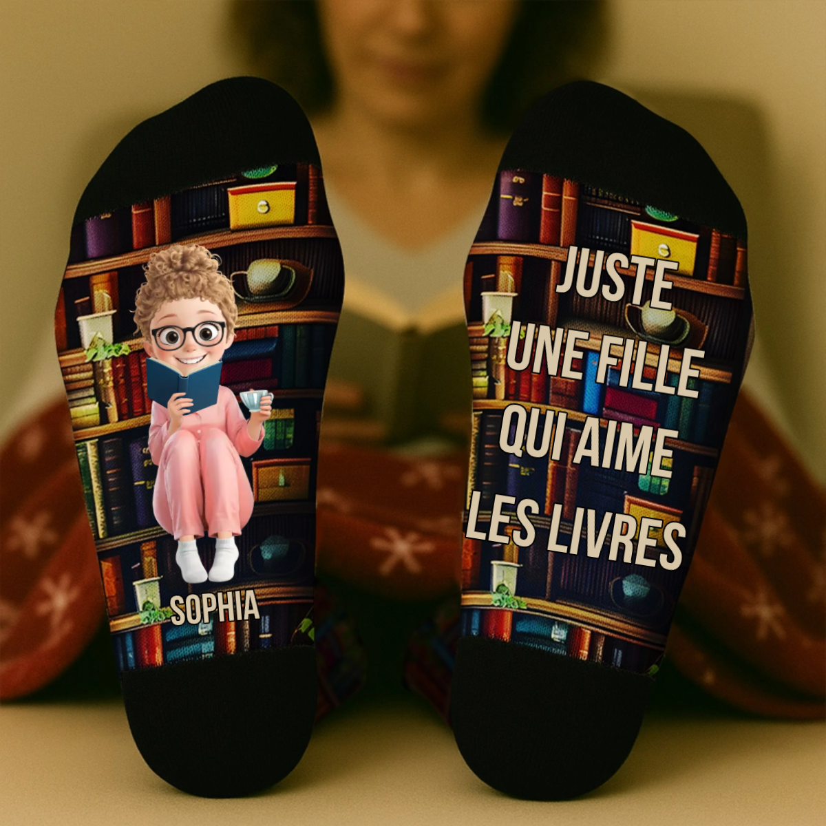 Juste une fille qui aime les livres - Cadeau Personnalisé | Chaussettes pour Femme