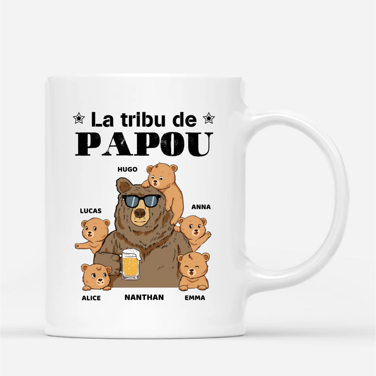 La tribu de Papou l’Ours - Cadeau Personnalisé | Mug pour Papa et Papou