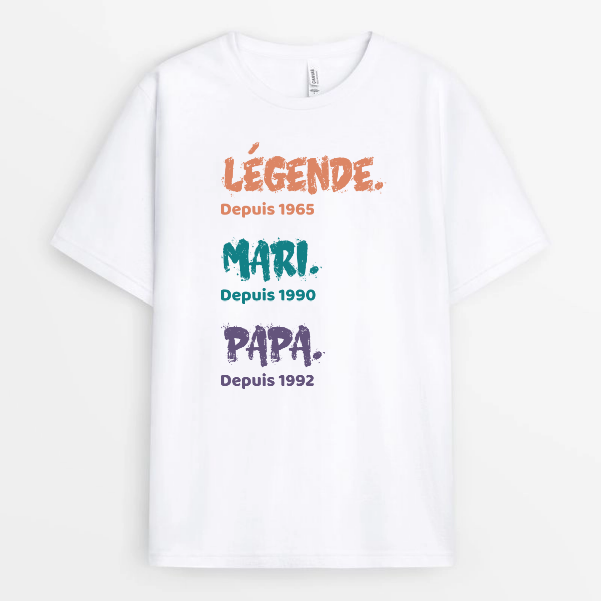 Légende, Mari, Papa Depuis - Cadeau Personnalisé | T-shirt pour Papa et Papou