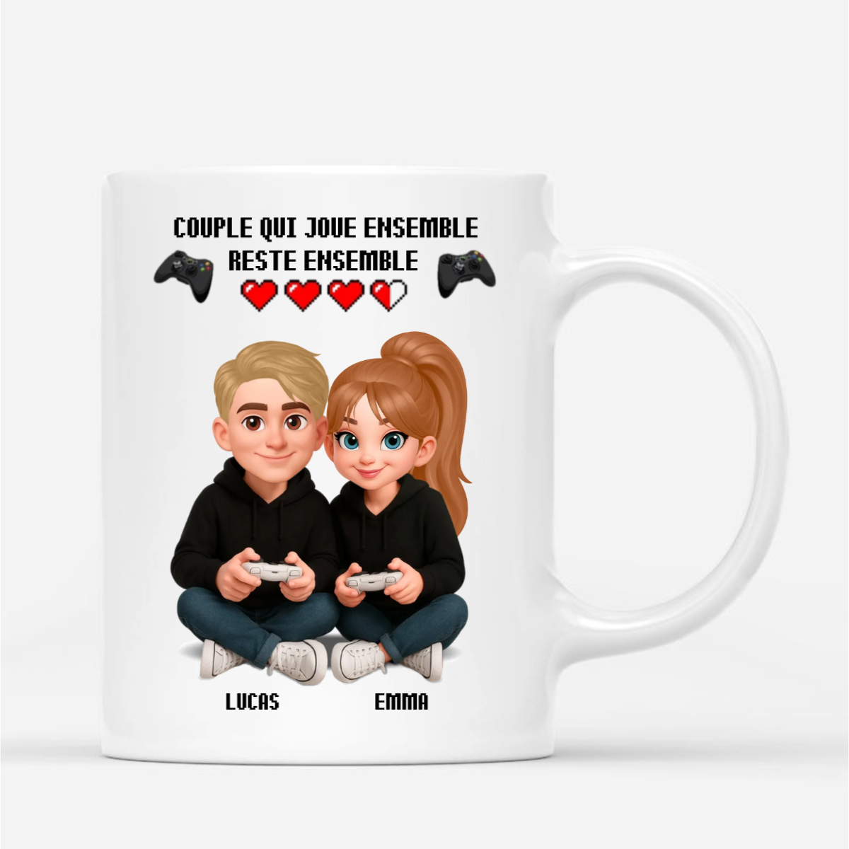 Mug Personnalisé Couple Gamer - Jouer Ensemble, Rester Ensemble | Cadeau Romantique Saint-Valentin et Anniversaire pour Passionnés de Jeux Vidéo