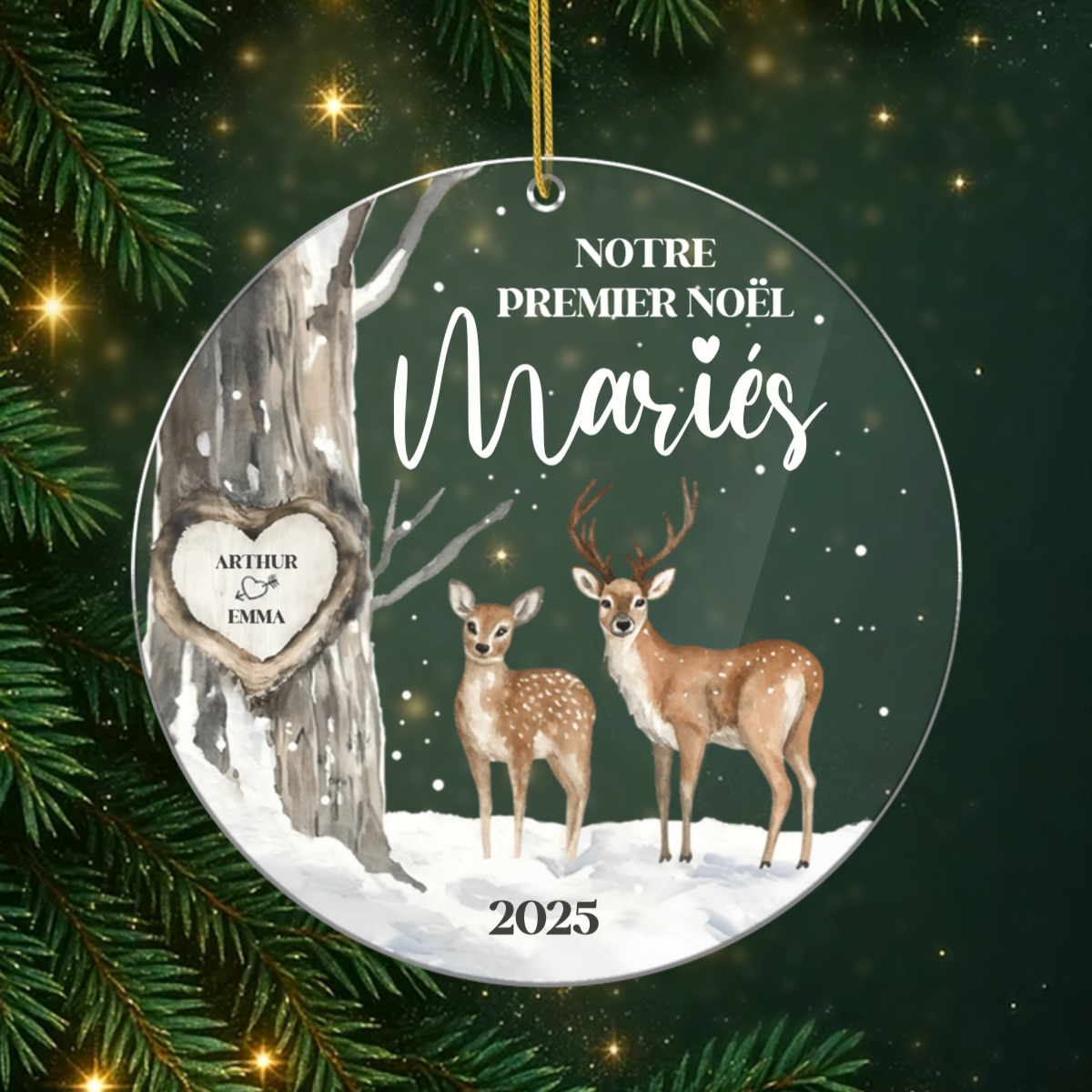 Cet ornement de Noël est bien plus qu'une simple décoration. C'est le souvenir tangible de ce moment magique : Noël, on est mariés. Un ornement élégant et intemporel à accrocher sur votre sapin pour les années à venir.