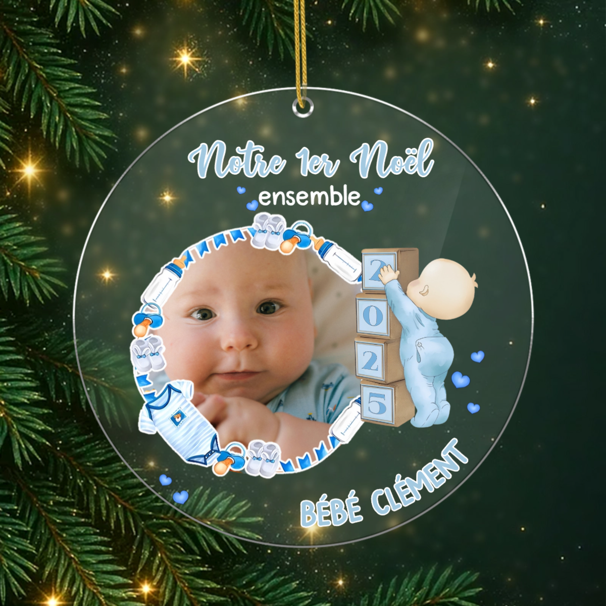 Ce magnifique Ornement de Noël personnalisé est le moyen le plus tendre d'immortaliser le premier Noël de votre enfant. Plus qu'une simple décoration, c'est le souvenir tangible de l'année où votre famille s'est agrandie.
