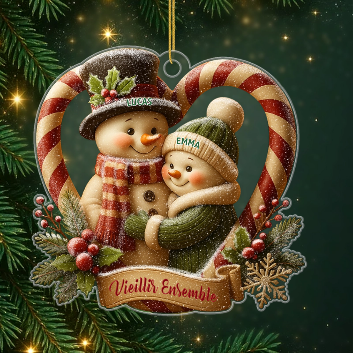 Notre premier Noël – Couple de bonhommes de neige | Ornement Noël Acrylique Personnalisé