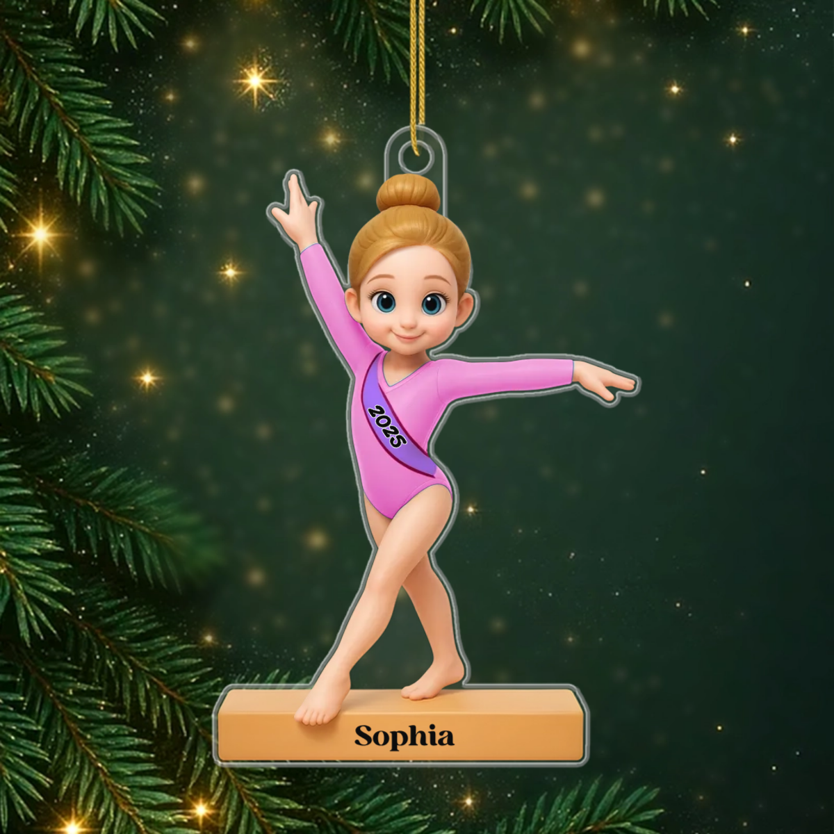 Titre: Ornement acrylique 3D Gymnaste – Cadeau de Noël personnalisé pour fille ou petite-fille