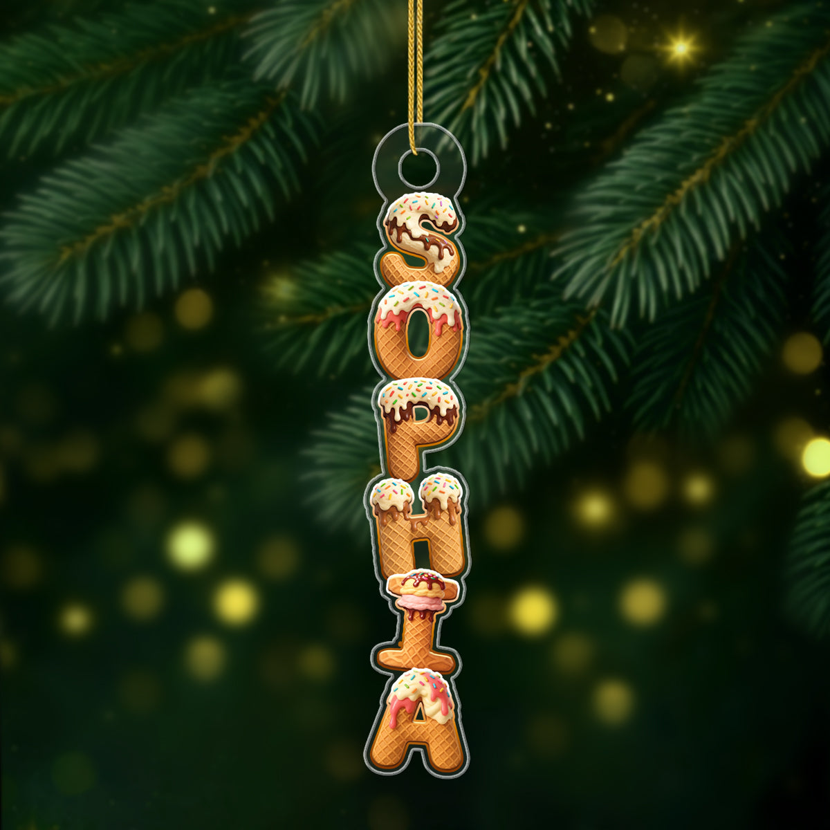 Ornement Acrylique Personnalisé - Cornet de Glace Famille – Cadeau Noël & Anniversaire pour Maman, Papa & Enfants – Famille, Souvenir Gourmand