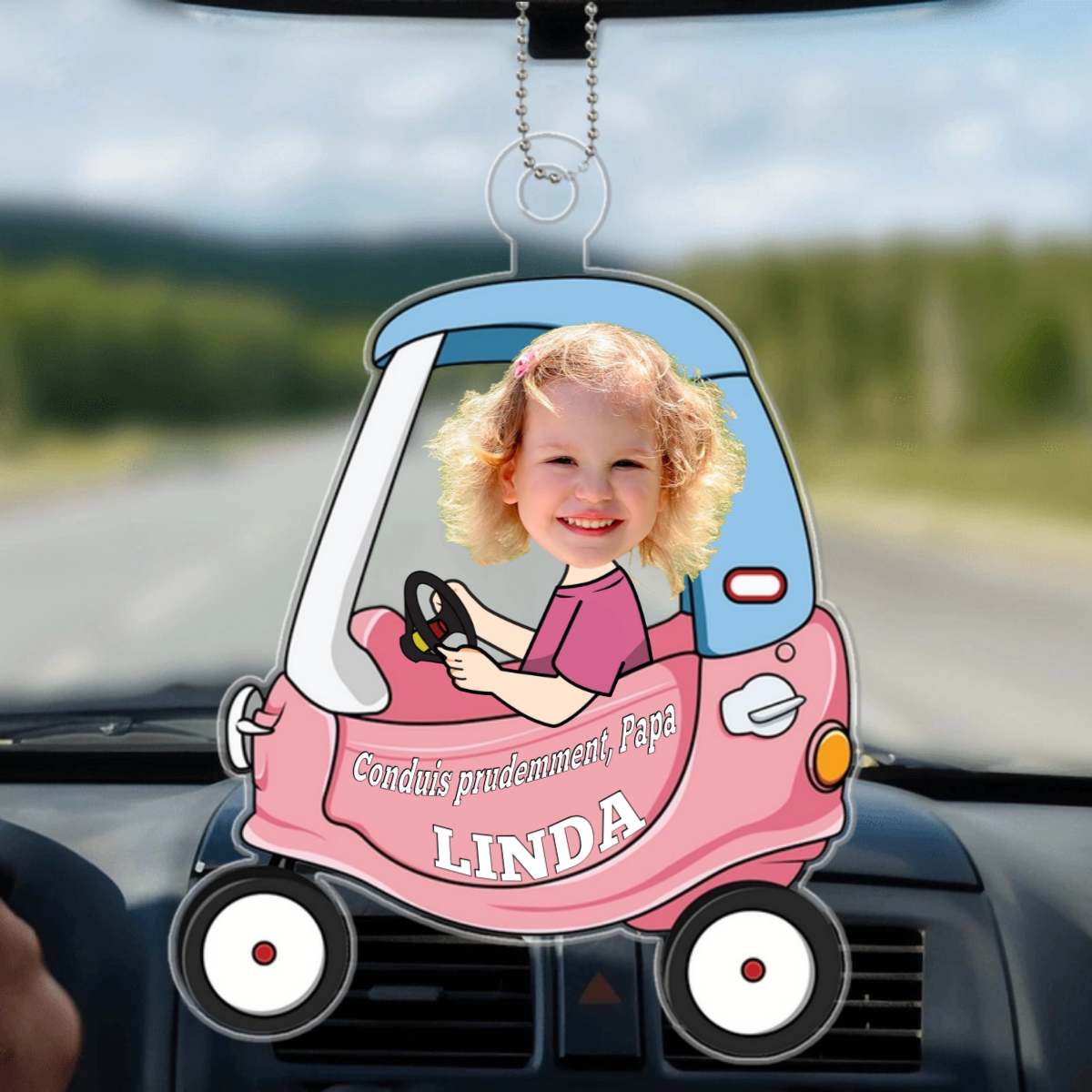 Avec cette suspension de voiture personnalisée avec photo, ton enfant t’accompagne à chaque trajet –