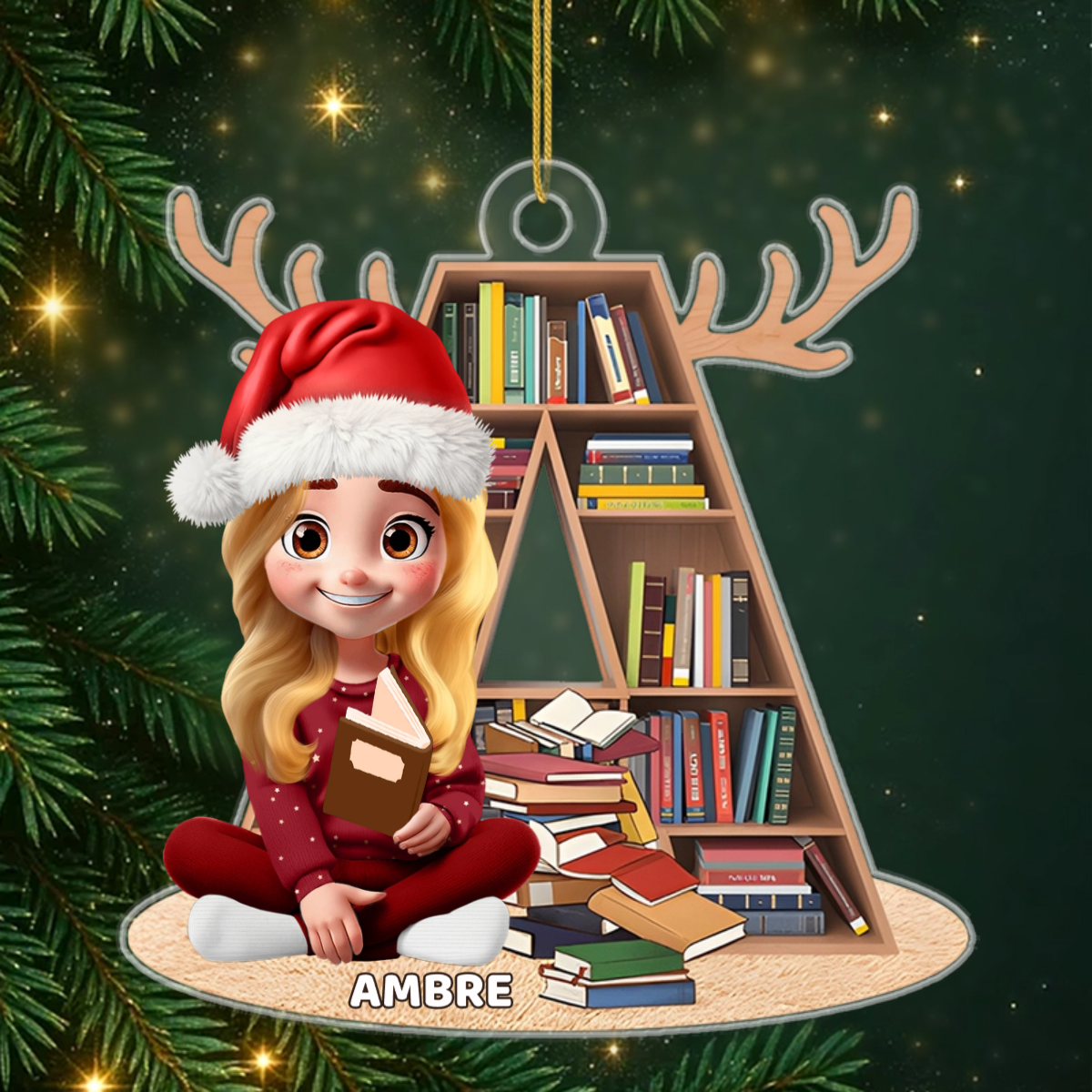 Ornement Noël Acrylique Personnalisé pour Amoureuse des Livres - Monogramme Lectrice