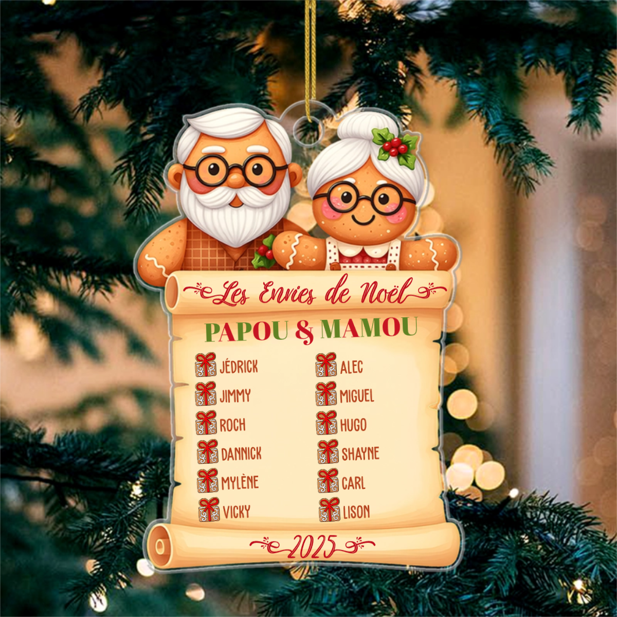 Ornement Noël Acrylique Personnalisé Souvenir - Les Envies de Noël de Papou & Mamou