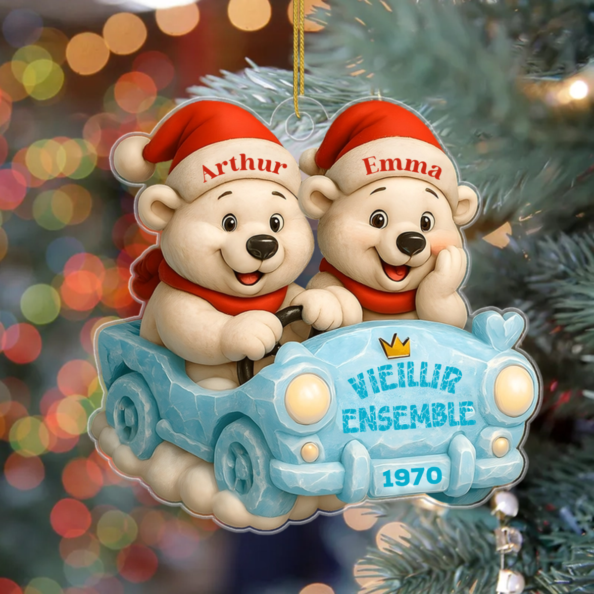 Ornement Noël Acrylique Personnalisé Souvenir Ours Couple - Vieillir Ensemble