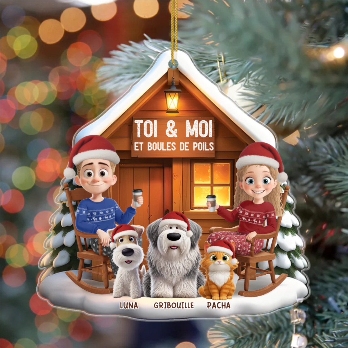 Ornement Noël Acrylique Personnalisé – Toi et Moi et Boules de Poils