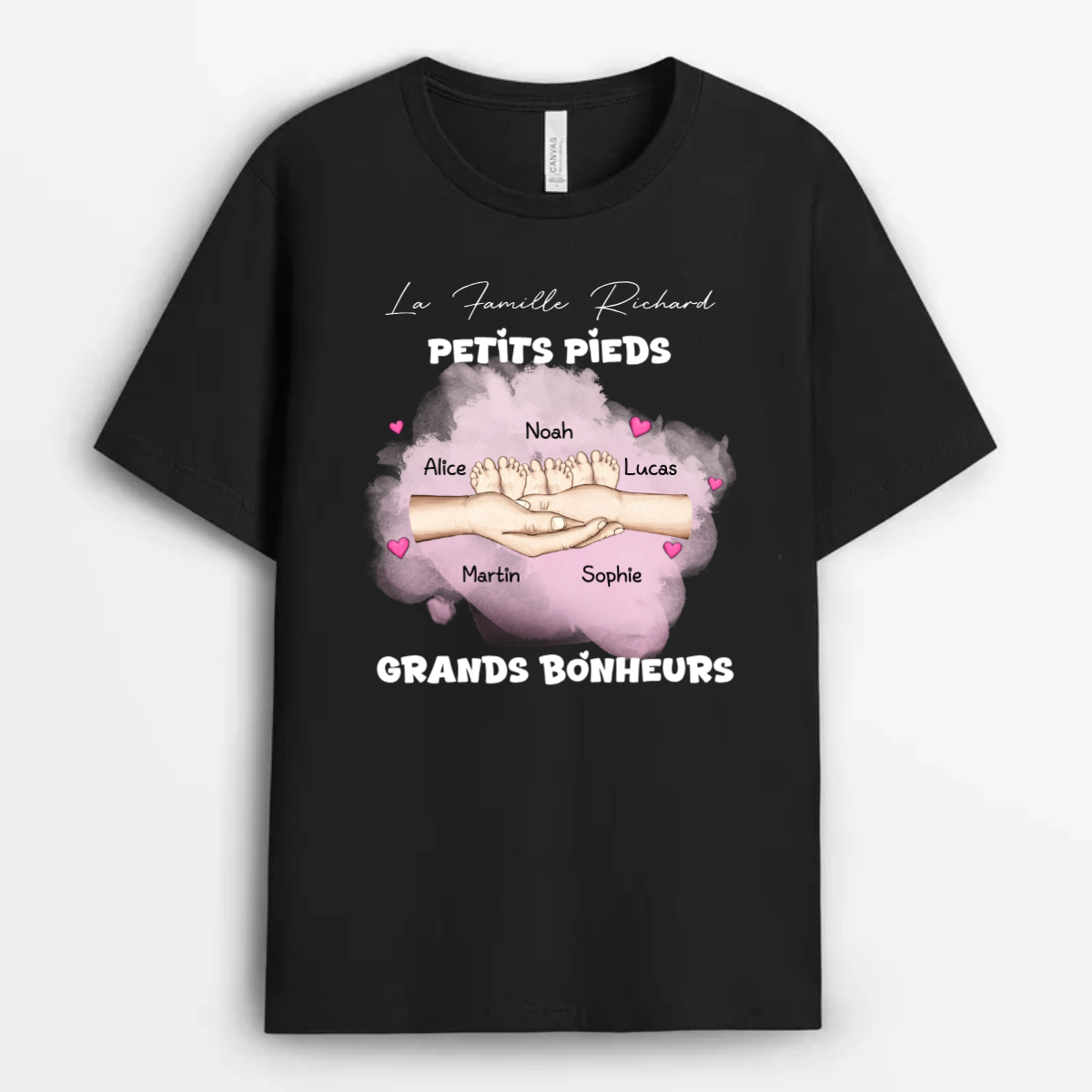 Petits pieds, grands bonheurs - Cadeau Personnalisé | T-shirt pour Maman et Papa