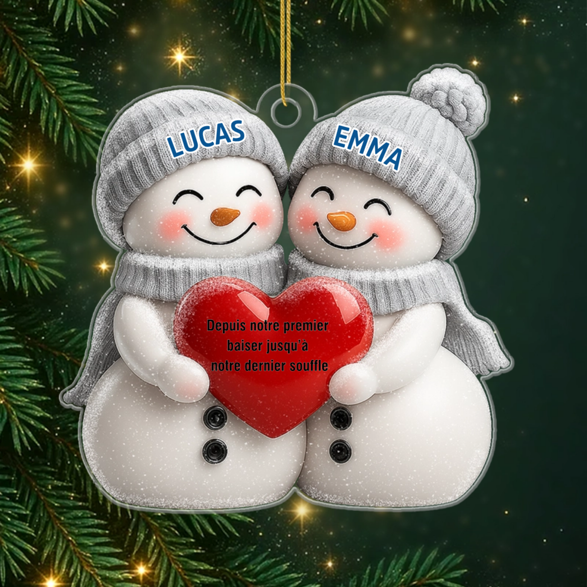 Vieillir Ensemble - Couple de bonhommes de neige | Ornement Noël Acrylique Personnalisé